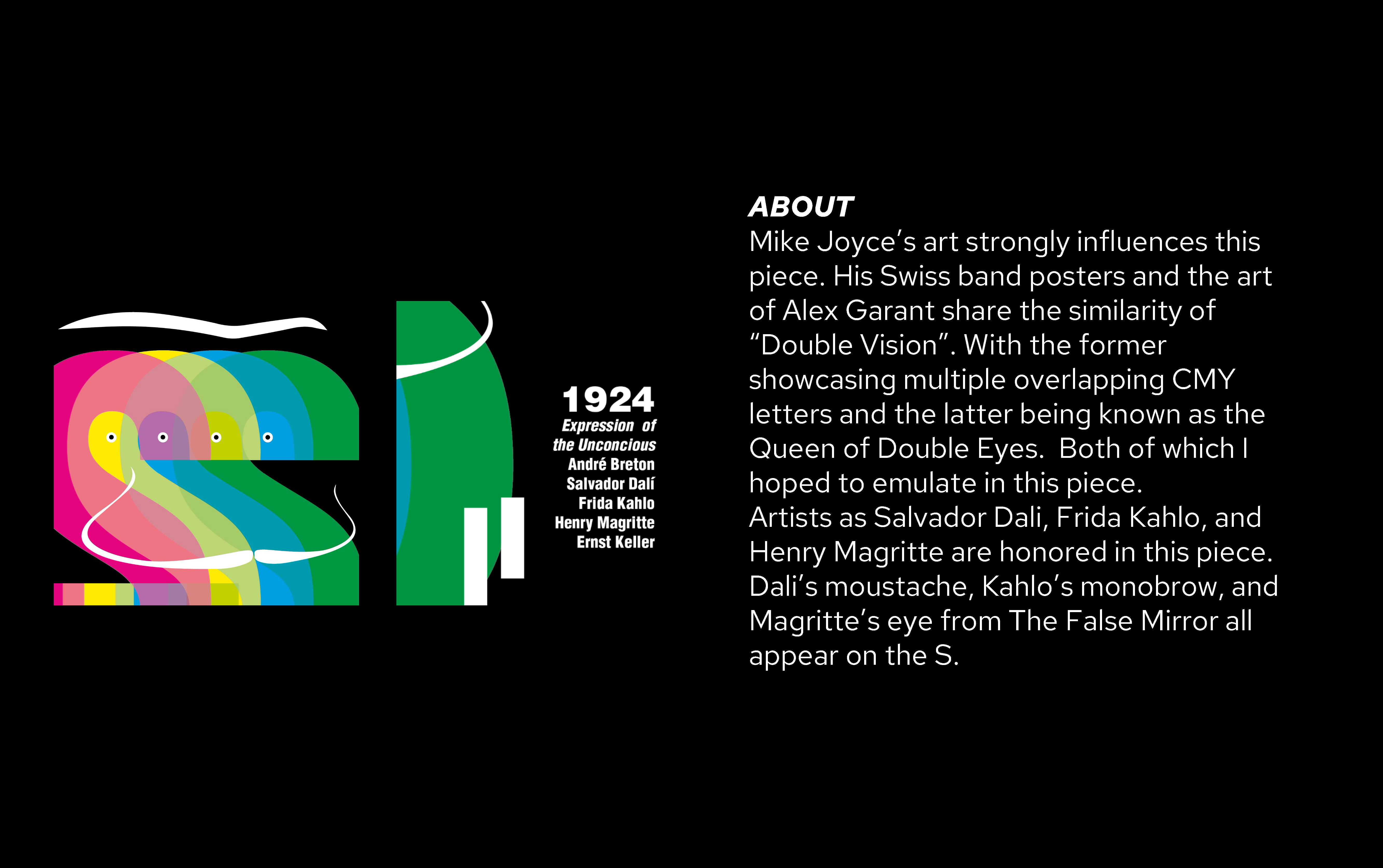 Ssssurrealism pays homage to some of Surrealism’s most recognizable artists. Design references Mike Joyce and Alex Grant, both of whom share a “Double Vision” theme.